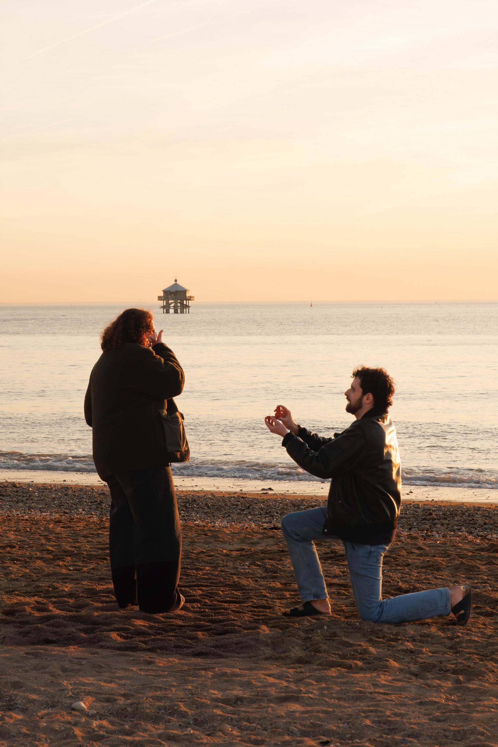 J'ai reçu un message de Pierre un vendredi pour le lendemain (oui oui), en me demandant si je serai disponible pour photographier sa demande en mariage au coucher de soleil sur une plage de La Rochelle ! J'ai bien sûr dis oui directement et nous avons planifié tout...